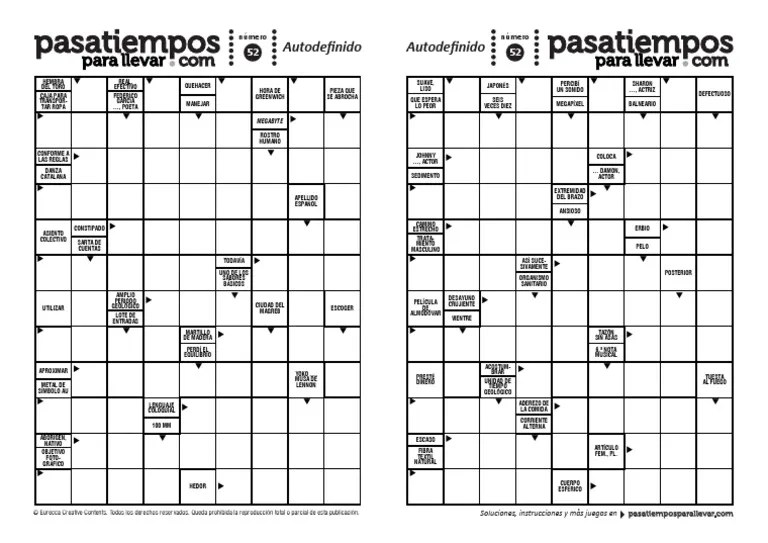 La página pasatiempos para llevar publica regularmente sopas de letras, autodefinidos, crucigramas y sudokus . The purpose of this format is to ensure document presentation that is independent of hardware, operating systems or application sof In the world of technology, pdf stands for portable document format. Muchos juegos de este tipo, en especial crucigramas y autodefinidos. Juegos de palabras que ayudan a ejercitar la mente, ampliar el vocabulario y la cultura.
